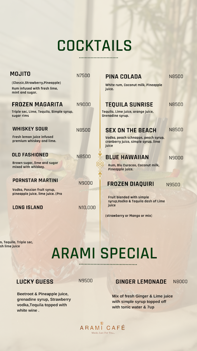 Each dish speaks to the passion behind Arami Cafe, making it a must-visit for food lovers in Lagos.